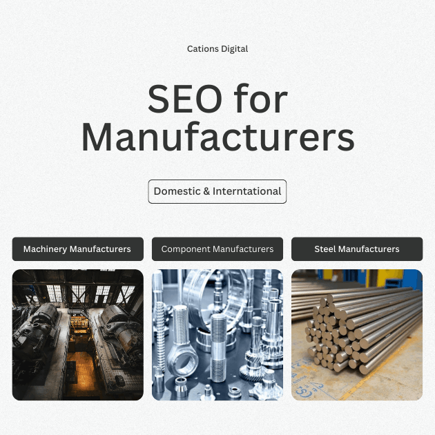 Cations Digital is a 13+ year experienced SEO company based in Mumbai and Pune, supporting manufacturers, suppliers, and exporters in Mumbai, Navi Mumbai, and Pune. We help manufacturing companies increase their visibility in domestic and international markets to generate qualified B2B leads from both domestic and international markets through our data-driven SEO strategies.